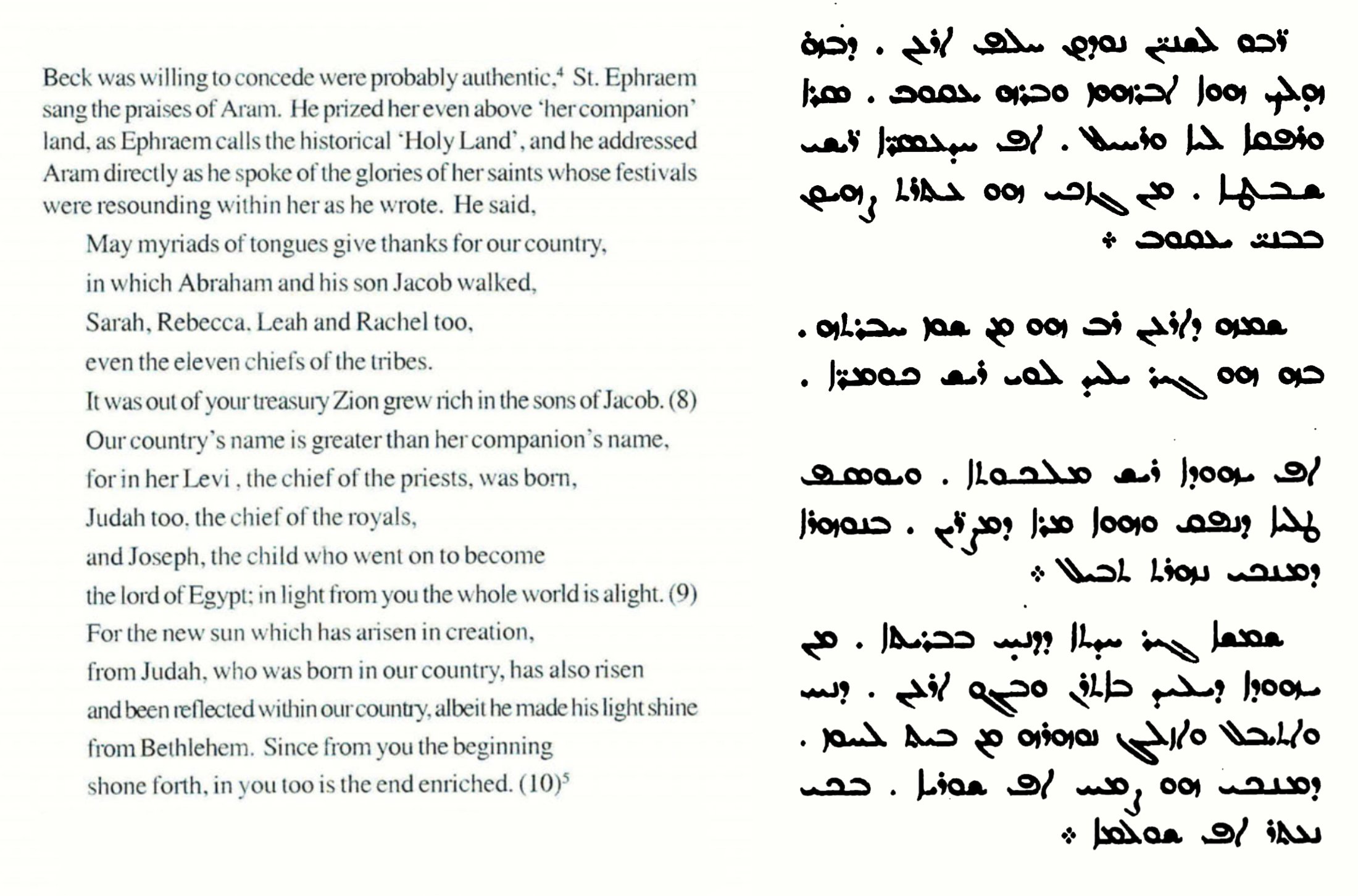 Saint Ephrem the Syrian sang the praises of Aram. He prized her even above ‘her companion’ land, as Ephraem calls the historical ‘Holy Land’, and he addressed Aram directly as he spoke of the glories of her saints whose festivals were resounding within her as he wrote. He said,