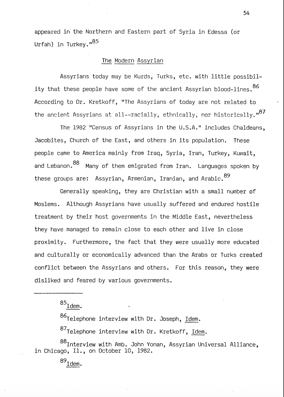 “The Assyrians of today are not related to the ancient Assyrians at all—racially, ethnically, nor historically.” (cited by May Abraham from Dr. Kretkoff)